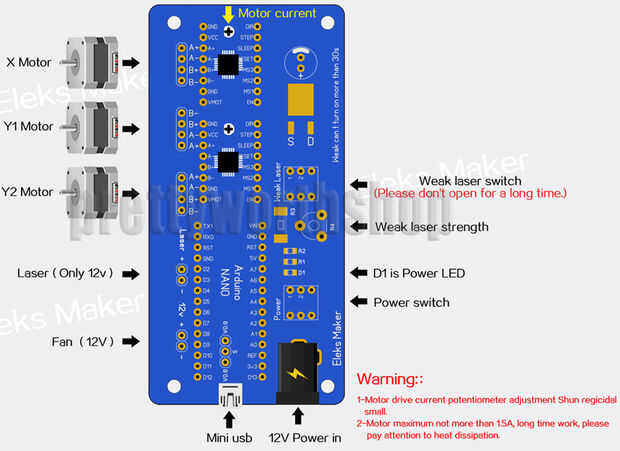 Esta máquina está diseñada para hacer el láser grabar en madera y opaco de plástico, con un Arduino y el GRBL como base de la automatización de la máquina. El eje de la máquina son sólo los ejes X e Y, que mueven un láser con potencia 1w 445nm, y est