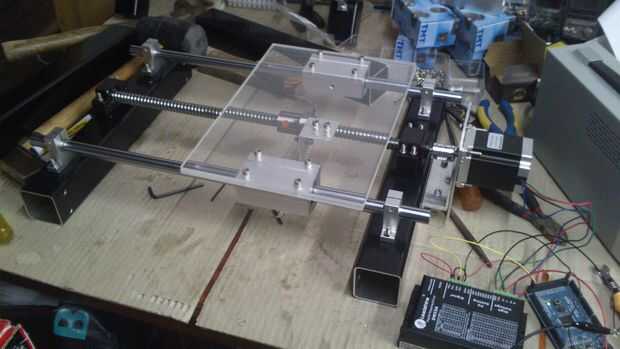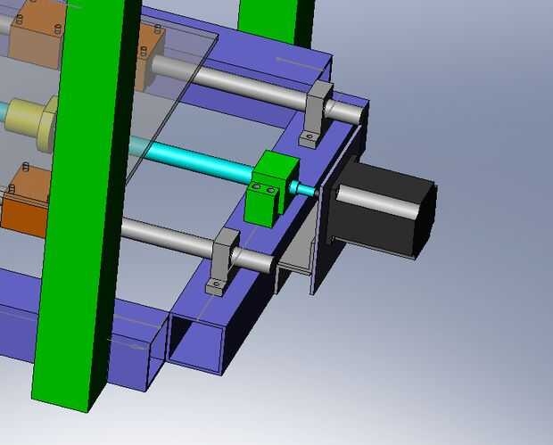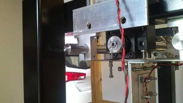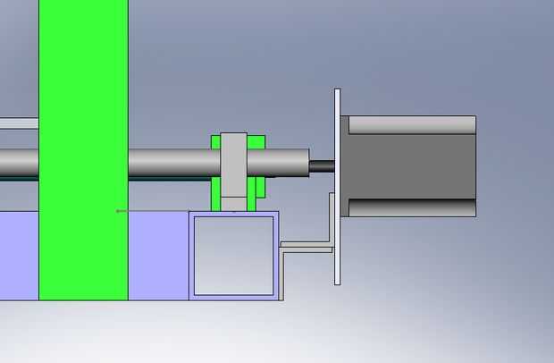 Para cada eje, el motor impulsa directamente el husillo a través de un acoplador de motor. Los motores están montados en el bastidor mediante dos ángulos de aluminio y una placa de aluminio. Los ángulos de aluminio y placa de 3 mm de grosor y son lo suficientemente fuertes como para soportar el motor de 1kg sin doblarse.
