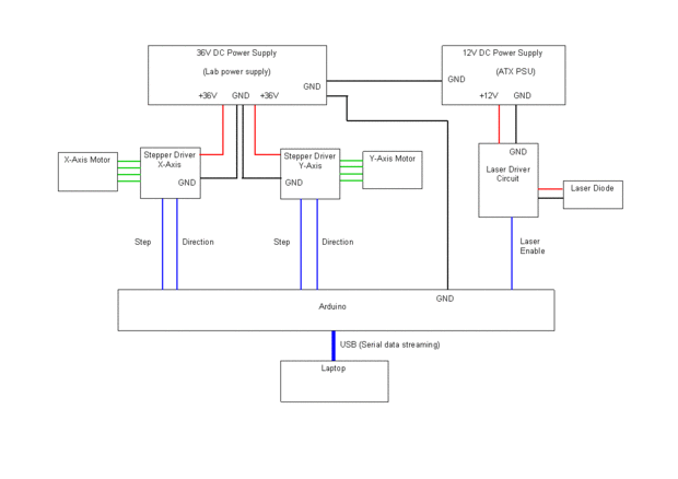 Utilicé cable 22AWG de núcleo sólido para cables de alimentación y líneas de señal. Cables de alimentación, los extremos de la fuente de alimentación fueron terminados con conectores de tipo banana.