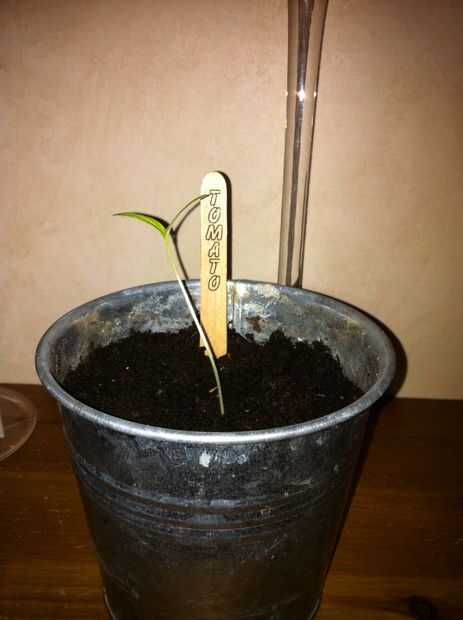 Un palito normal grabado con el nombre de las plantas.