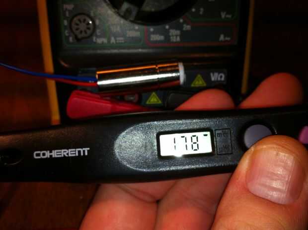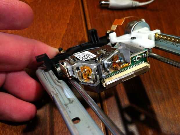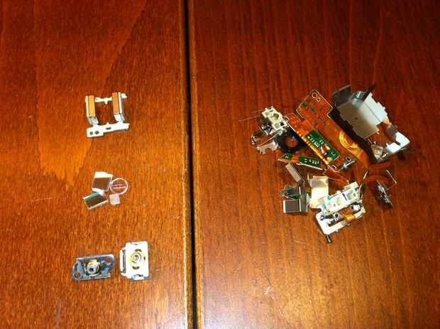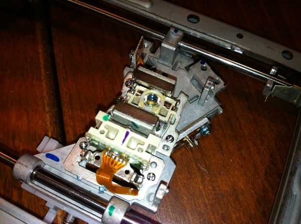 Quitar el laser de la grabadora no es difícil pero más montajes de la lente se ven diferentes. Coloque los diodos (habrá dos, uno IR y uno rojo) y quitarlos de la Asamblea. Hay alguna óptica y dos imanes que se pueden guardar para futuros proyectos. Una vez que ha quitado los dos diodos se debe tener cuidado. Los dos diodos son muy pequeños y frágiles. Retire las tiras pequeñas de PCB conexión de los diodos y use dos pilas AAA para comprobar si el diodo rojo.