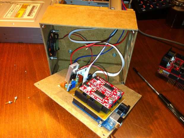 Se han añadido algunos extras pequeñas a lo largo de la construcción. Primero que es el ventilador que se aleja de humo el espacio de trabajo. Se trata de un ventilador de ordenador pequeño 40mm conectado al relé láser que escribí en el paso de la electrónica. El ventilador apunta lejos del espacio de trabajo y aspira suavemente el humo lejos.