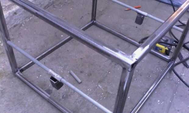 El marco se construye del rectangular 15 x 15 mm, altura 275 mm, ancho 375 mm y 345mm de longitud.