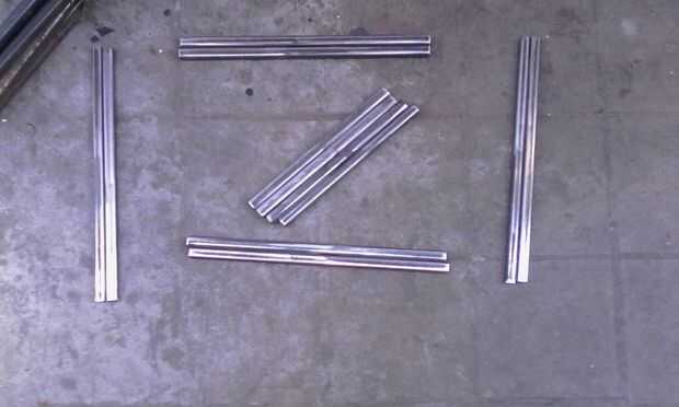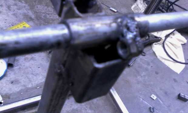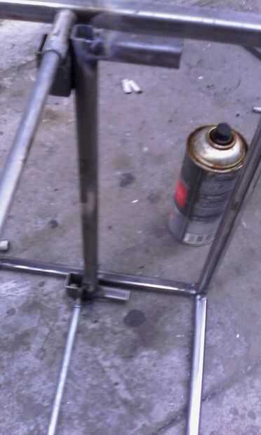 Tubos redondo 8 mm que se instalará en cuatro orificios en 125mm desde abajo. En 8 mm tubo redondo presentará dos piezas de 8 mm redondo tubo interior. En piezas de tubo de 8 mm x eje se soldar tuercas y debajo de ellos dos de 5 mm. Todos los datos se muestran en las imágenes. Después de que las piezas fueron soldadas limpio de óxido y pintura pero primero protegemos los tubo de 8mm y tuercas no se pintan.