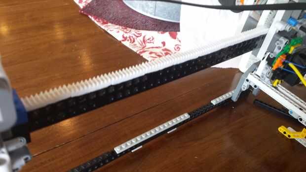 Para construir el marco [Descargar Lego Digital Designer y] seguir las instrucciones en el archivo LDD - tuve algunos ajuste de problemas los subconjuntos juntos en el programa pero de bastante evidente donde van en las fotos. Usted puede acceder a la guía de construcción en la nueva versión de Lego Digital Designer con el botón mode en la parte superior derecha o con F7 (comando + M en Mac). Parece haber un estante de engranaje del pedazo que falta (y no puedo averiguar dónde está falta de) y la pista móvil bastante no medir correctamente en el archivo (debido a la flexión creo), pero todo cabe bien una vez construida. Experimentado el Lego ingenieros probablemente pueden encontrar algunas modificaciones o diseños alternativos para completar la máquina con otras partes o mejorarla.