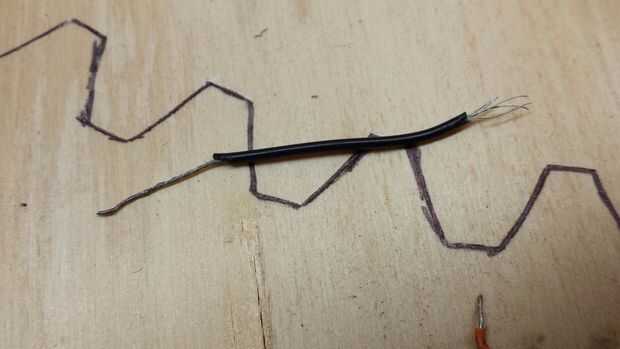 Para conectar los cables, torcedura para arriba tan firmemente como sea posible girar alrededor de otro conductor (como un cable protoboard) para conseguir un lazo de unos tan pequeños como la conduce de diodo, luego un alicate para apretar el lazo más pequeño. Además usé cinta aislante en capas para separar los dos cables para reducir las posibilidades de ellos desenrollar y cortocircuito.