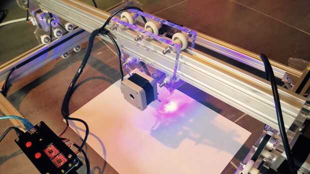 Esta máquina está diseñada para hacer el láser grabar en madera y opaco de plástico, con un Arduino y el GRBL como base de la automatización de la máquina. El eje de la máquina son sólo los ejes X e Y, que mueven un láser con potencia 1w 445nm, y est