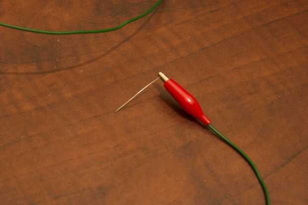 Conecte el otro Cocodrilo clip al metal que se va a utilizar para grabado