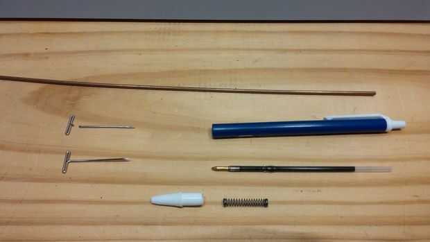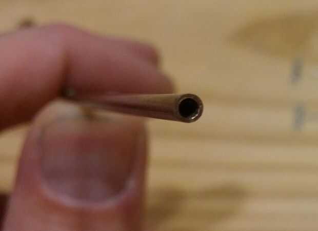 He utilizado un tubo de cobre de diámetro pequeño. Probablemente podrían utilizarse otros metales, pero esto es lo que tenía en mano. Tendrá el diámetro interno sobre el mismo tamaño que el diámetro del perno de T, pero si se utiliza un perno más grande, sólo tienes que seleccionar el tamaño adecuado. También, el diámetro exterior tendrá que ser capaz de caber a través de la apertura normal de la pluma.