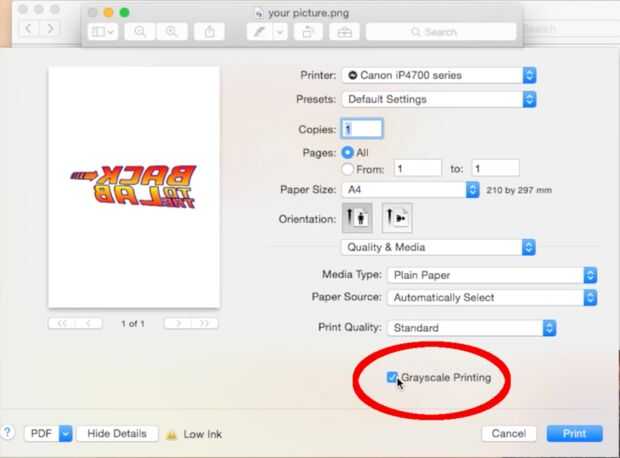 También elegir en "Calidad y medios de comunicación" "Impresión en escala de grises"