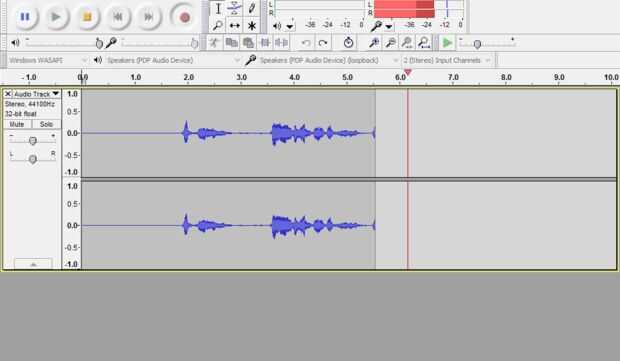 Encontrar algo para grabar (que no propiedad), presione el botón de grabar en audacity y luego reproducir el audio que desea grabar. Cuando termines simplemente presione el botón de parada.