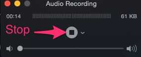 Una vez que haya terminado la grabación, haga clic en el botón redondo en el centro de la ventana "Grabar Audio". (Tendrá un pequeño cuadrado negro en el centro.) Detiene la grabación.