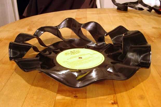 Trabajar con el vinilo es algo curioso. Cuando hace calor el vinilo es flexible y se siente casi como el cuero de fruta. Después de unos segundos se puede formar el vinilo y comenzará a llevar a cabo su forma. En este punto, empezar a trabajar el material tan rápido como puedas. Incluso con sólo 12 curvas en el registro no tenía suficiente tiempo para hacer todo bien.