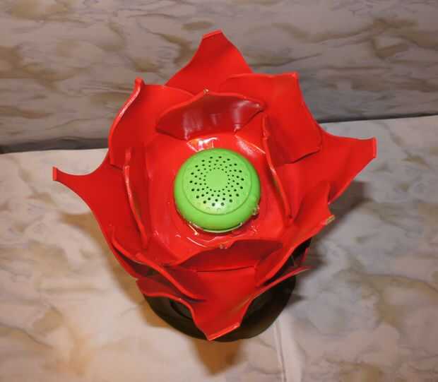 De todos modos, este proyecto es un poco más cerca de lo que tenía originalmente la intención con mi lámpara flor instructable. En el momento, había intentado de la forma de los pétalos en forma más acentuada, pero era difícil no arrastre el vinilo cuando estaba caliente por lo que decidí dejarlos como es. Una vez que empecé mi proyecto de cargador de teléfono, me di cuenta podía utilizar tijeras para obtener una forma más precisa (todavía quiero la impresora, San Francisco) y decidió agregar un bluetooth en lugar de una luz o cargador para ampliar el tipo de cosas que puede hacer con los registros.