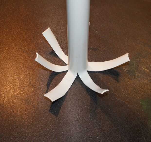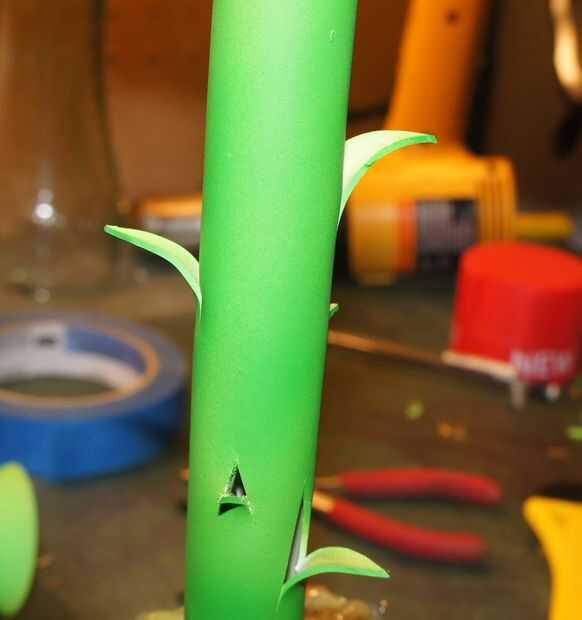 4. Después de que se haya enfriado, dale la vuelta sobre y utilice la hoja para cortar al revés formas V al azar las áreas del tallo. No demasiado calor o la hoja no penetrará a través del plástico.