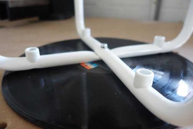 Los tornillos de acople a través de las almohadillas que vino con el taburete!