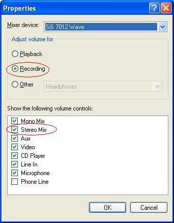 asegurarse de que mezcla estéreo y mono mix están marcadas, haga clic en aceptar y la pantalla para la