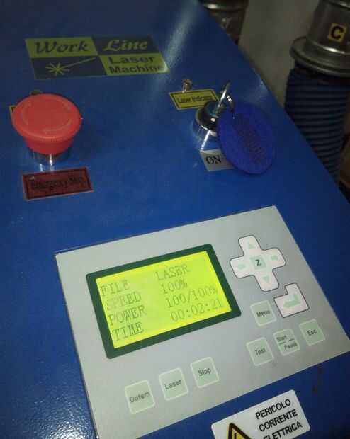 Haga clic en la "tecla esc" varias veces y volver al menú principal, mueva el láser por lo que está en el punto de partida eligieron antes. Con el botón "test" puede ver el perímetro del trabajo y compruebe que ha colocado goma derecha.