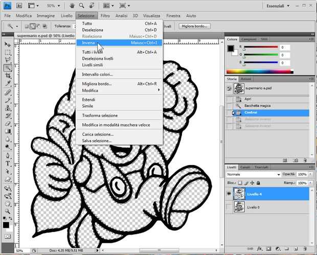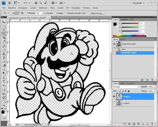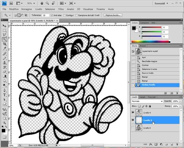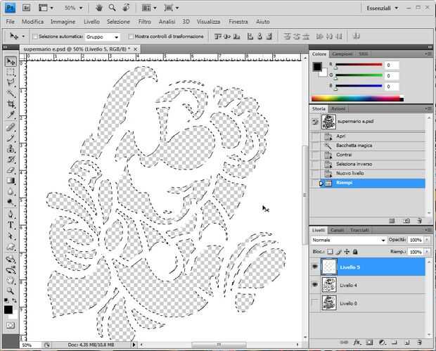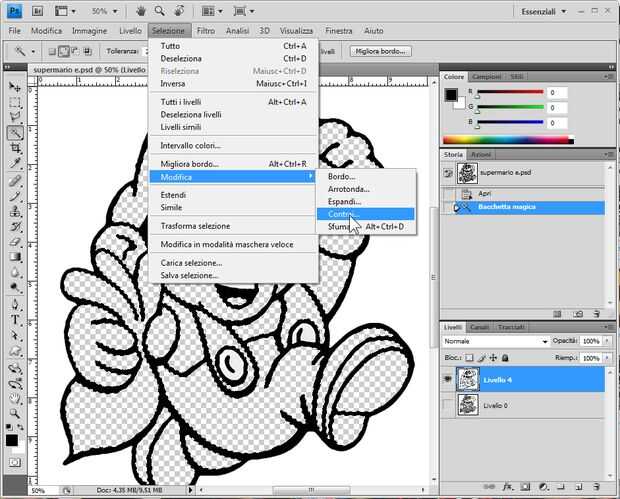 Para hacer que usted tiene que seleccionar las áreas vacías y reducir la selección de unos 4-5 píxeles. Luego invertir la selección, haga una nueva capa, rellenar con blanco y coloque entre contornos capa y la capa de fondo.