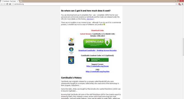 1. Descargar CamStudio desde http://camstudio.org/ (necesita para desplazarse hacia abajo de la página web).