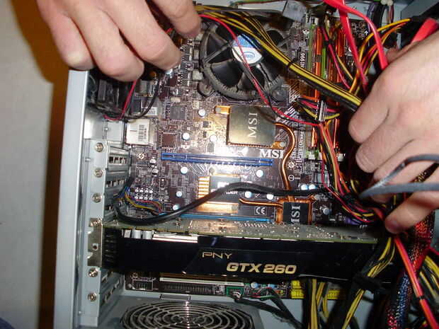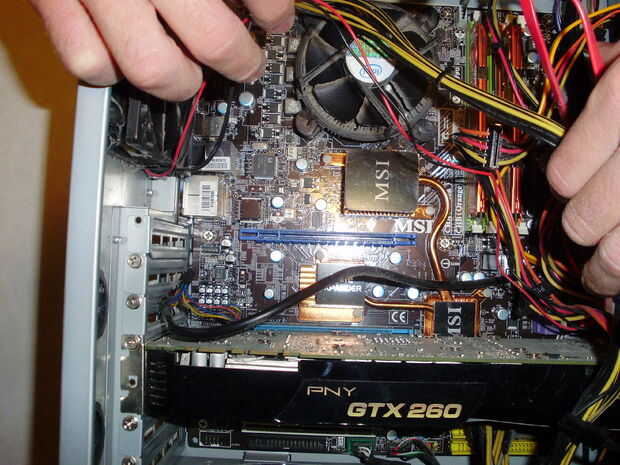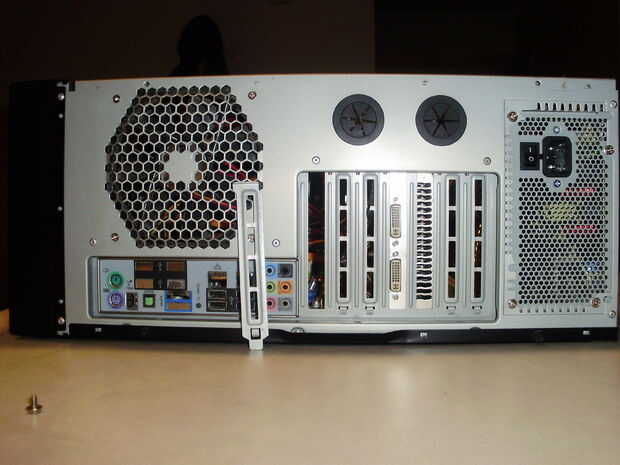 identificar la ranura PCIe que se va a pegar la tarjeta en. Vistazo a la escritura justo al lado de la ranura para asegurarse de que dice PCI Express o algo similar. Si en duda consulte manual de su placa base.2. Quite la tenencia del tornillo la placa trasera en la que está enfrente de la ranura PCI como se muestra en la foto de abajo.