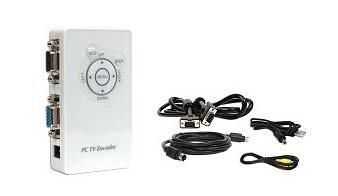 Convertidor de VGA a tv: proveedores ofrecen el ITV-900 PC a TV convertidor por 190 $, pero me compré uno nuevo por 40 $ de HouseOfDeals.com, teléfono 800.726.3718 orden. Esta unidad con USB se utiliza para mostrar presentaciones computarizadas en aparatos de televisión, y no pasa la señal de audio, como unidades más caras. Varios modelos equivalentes y vendedores suba en una búsqueda en internet para "VGA al convertidor de tv." El ITV-900 tiene botones de control y una pantalla pantalla que permitirá a más ajustar el tamaño, color, contraste, etc., de la imagen que se grabó y luego sale conectador del VGA del ordenador aparece en un televisor especial,.