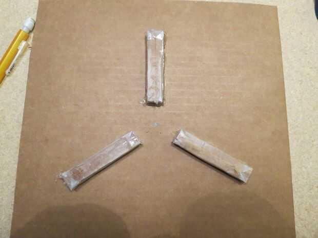 Coloque cada uno de los bloques de manera que irradian hacia fuera en ángulo de 120 grados aproximadamente con la cara de centro más espaciada 3/4" desde el punto de centro.