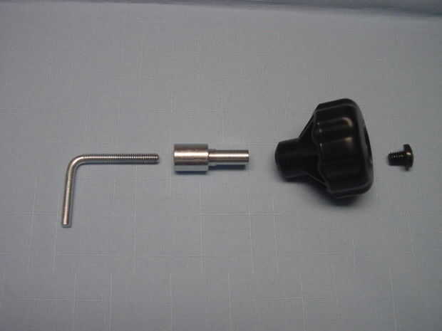 4. Desenrosque el tornillo cabeza Phillips en el centro de la perilla y retire el adaptador de roscado hembra.
