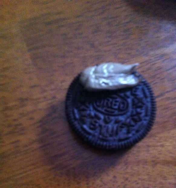 1. Ponga el glaseado de chocolate sobre otra Oreo.