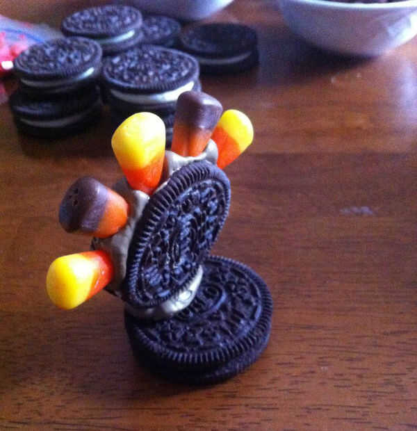 -El maíz de caramelo tacon Oreo debe tener los granos dulces en la parte superior (estas son las plumas del pavo).