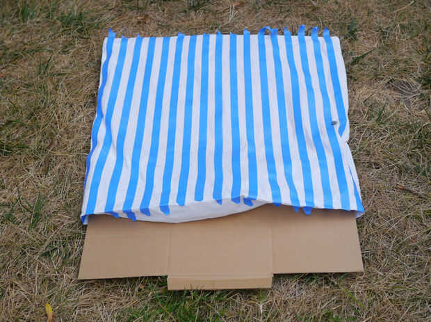 Para prepararse a la funda de almohada, puse abajo varios pedazos de cinta de pintor a través de ella como en la foto aquí. También puse un trozo de cartón dentro de una mejor superficie de pintura y para evitar la pintura de la sangría a través al otro lado.