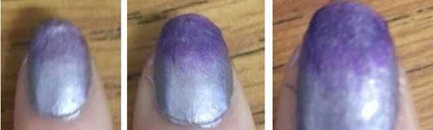 Esponja el color en un extremo de la uña. Utilizar sólo unas pocas capas en la zona que desea para el gradiente. Luego, continúan dub abrigos en el extremo de la uña, por lo que la punta se vuelve oscura en relación con el principio del degradado. Espere hasta que el color se seca para pasar al siguiente paso.