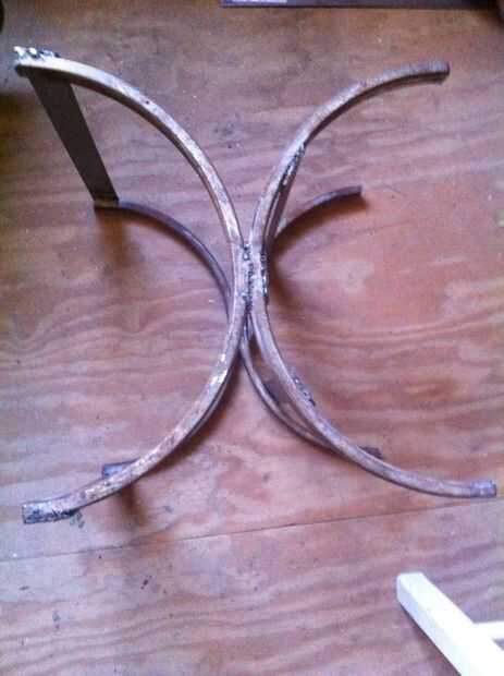 Esta lámpara surgió de algunos otros proyectos.¿Sabes cómo terminas con material de desecho cada vez que termines algo? Había dejado sobre la chapa de una mesa de contrachapado doblado, nogal oscuro de un banco de madera y una lámpara sin una sombra.