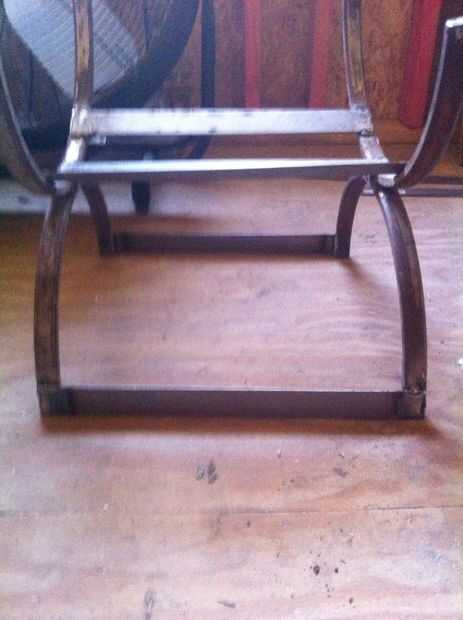 Siguiente tuve algunos planos bar 1/8 x 1 1/2 pulgadas Que he utilizado para conectar los 2 extremos juntos para apoyar. Puse 3 en la parte superior para mantener registros más pequeños caigan a través de. También puse 2 en la parte inferior para apoyar las piernas.