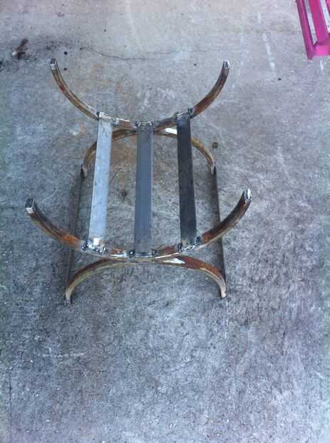 El estante es 16 x 16 x 16. Sólo derecho de unos pocos troncos junto a la chimenea. Todos los materiales que se utilizaron salieron del montón de chatarra. Lo único que costo fue un poco de hilo que utilicé para mi soldador eléctrico. Una pareja latas de pintura en aerosol y trabajo completan.