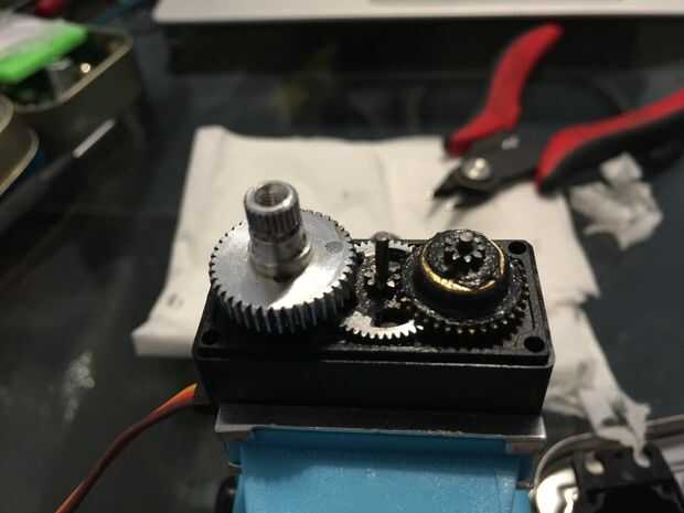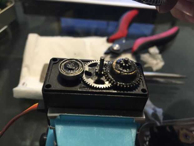 Consejos: Mantener el poder a su torre de servo como todos los tiempos. Así sabes si algunas cosas tocan el potenciómetro y activan el motor interior. Usted puede reajustar el potenciómetro antes de pone todo de nuevo y saber que el potenciómetro se trasladó. Durante la prueba, si se oye un chirrido puede cuidadosamente Quite la cubierta superior y realizar la prueba. Sin embargo, gire lentamente el potenciómetro, en alta velocidad el engranaje podría conseguir suelto.