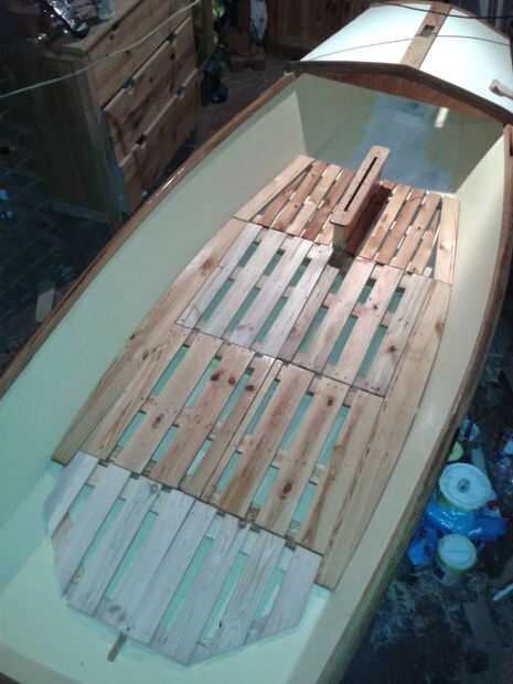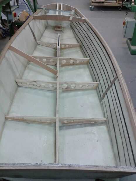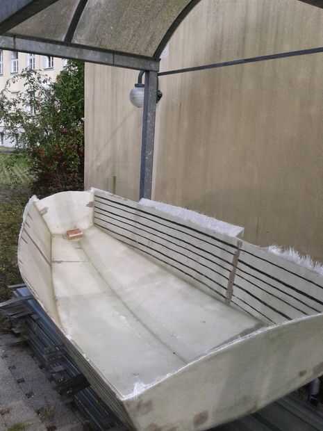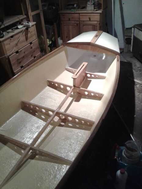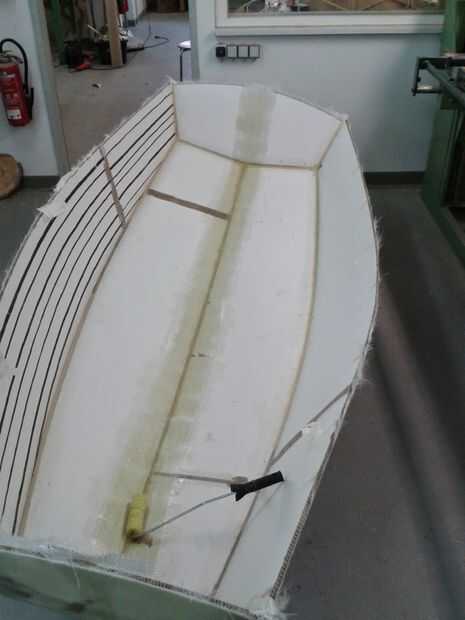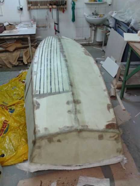 El casco es completamente dobles con tela poliéster. Esto es más barato que el epoxi. El resultado es un casco muy duro y estable. Luego instalé las piezas internas. (Pegando una Fogonadura-Carlinga, instalar una cubierta pequeña, instalar la orza caso.)