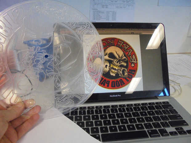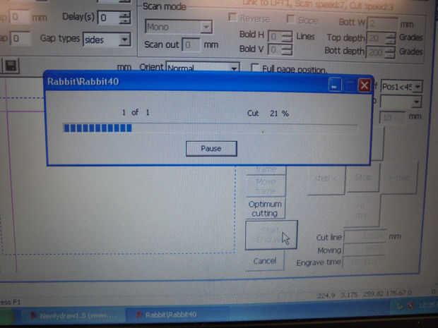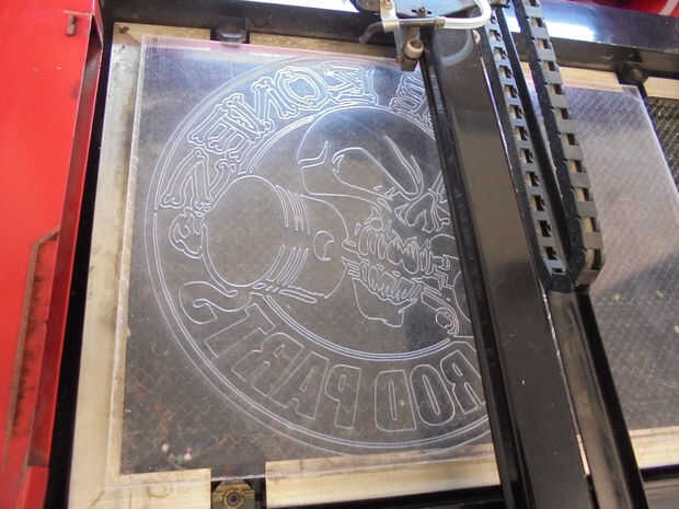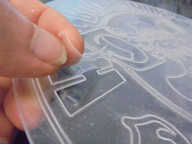 La idea es acelerar la máquina y reducir el poder tan sólo corta a través de la película protectora. En el segundo corte sólo queremos que la máquina de cortar de la forma exterior del reloj y el agujero en el medio.