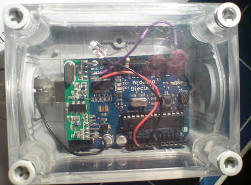 También necesita una antena conectada a la tarjeta receptora. Usé un pedazo largo de 12cm de alambre. Se trata de la mitad lo que se recomienda en esta excelente página.