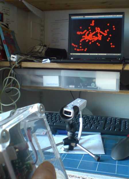 Presione los botones 1 y 2 en el wiimote. Después de haber detectado, onda su fuente infra rojo (el aerosol puede) por delante de ella. Debería ver un círculo rojo siguiendo su movimiento!