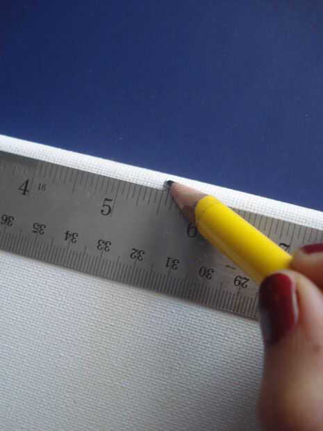 Mida los puntos de la mitad de la longitud y la anchura de tu lienzo