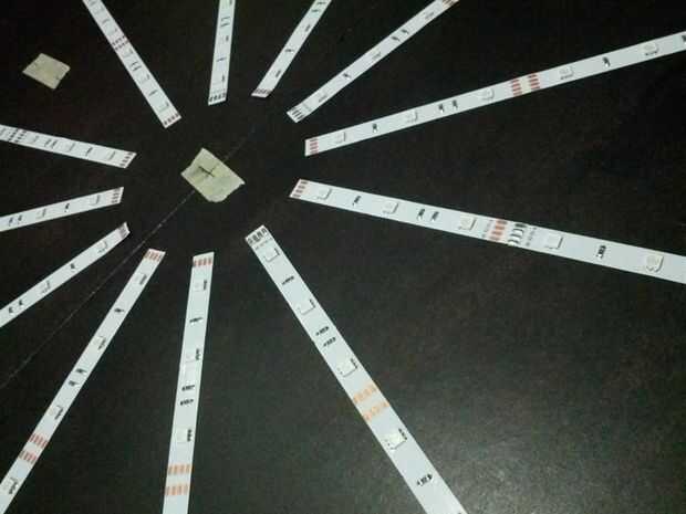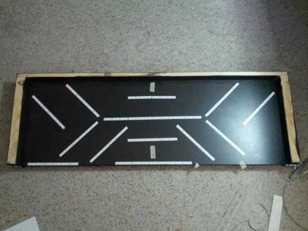 Esto puede ser fácil si haces un diseño simple o complicarse bastante si tienes un diseño complejo. Hay muchas maneras de ir sobre esto y algunos podrían ser mejores que otros. Pero comenzó marcando el centro con cinta de enmascarar, luego utiliza las marcas en la tira de LED, tal como un LED o tira corta punto de separación, diseño que simple horizontal y vertical las tiras. Una vez que se colocaron los fácil que utilicé una plaza, cinta métrica, regla, regla de 45 grados, e incluso un transportador para posicionar y fijar el LED tiras en su lugar. Había una buena cantidad de estimar y conjeturar, pero todo resultó lo suficientemente cerca.