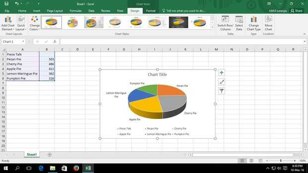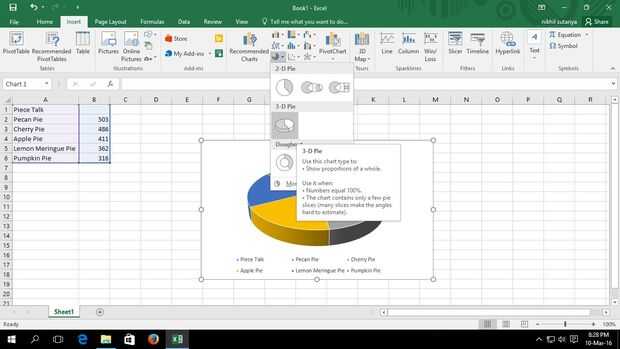 En la lista menú opción 3-d Pie.