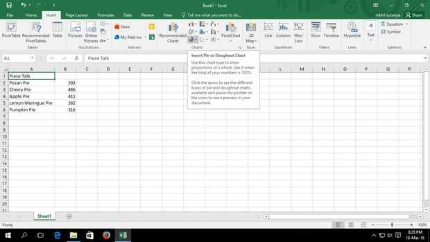 Ir al menú Insertar y seleccione Insertar gráfico en la sección de cartas.