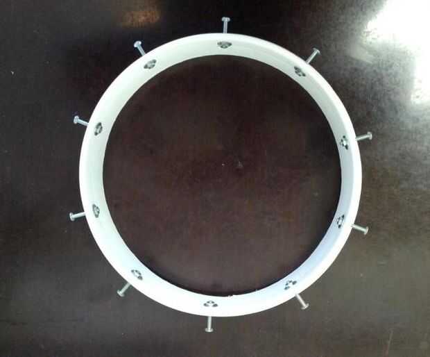2. A continuación, he insertado el cerrojo desde el exterior del anillo en los agujeros taladrados.