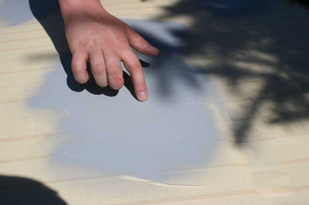Asegúrese de que la pintura ya no es pegajosa al tacto antes de que enmascare las porciones pintadas en un color nuevo.