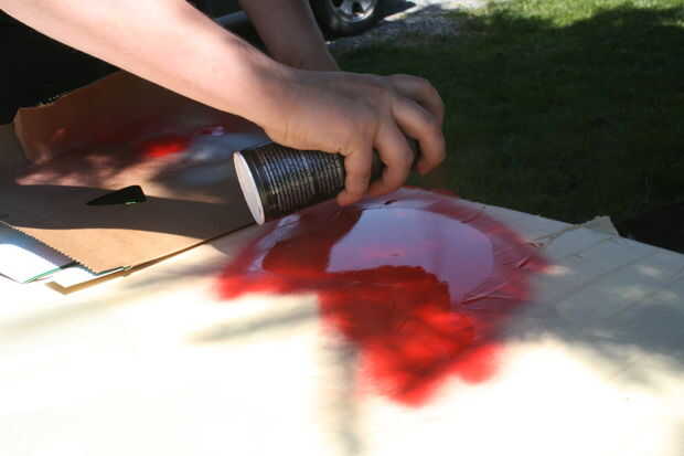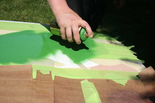 Sistemáticamente cubrir las áreas secas, pintadas y exponer la siguiente área a ser pintada. Si la plantilla consigue demasiado cubierta que tenga para volver a enmascarar.