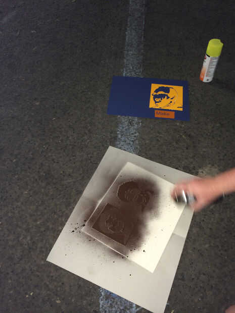 Algunos experimentos pueden ser necesario para lograr el resultado deseado. Algunas pinturas en spray o pinturas grueso aplicados pueden sangrar a través de la plantilla, especialmente en los bordes. Un lienzo brillante permitirá más fácil extracción de los componentes de la cinta y la plantilla.