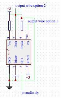 Este IC es un oscilador astable, lo que significa que produce ondas cuadradas. A frecuencias lo suficientemente altas (en cualquier lugar por encima de 20Hz), las ondas se pueden convertir en audio!