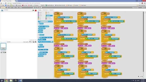 Nota: al llegar al botón "Clic" sobre su MaKey MaKey, utilice el comando "mouse down?" en lugar de "_ clave presionado?"